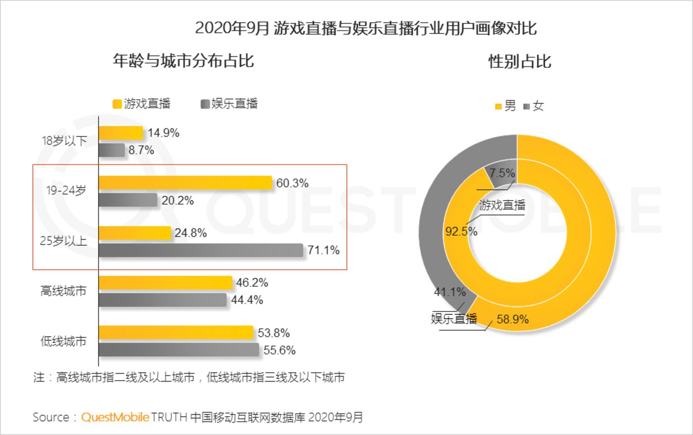 4.2 游戏直播与娱乐直播用户差异较大,游戏直播用户男性占比超九成,主要为19-24岁年轻用户;娱乐直播主流用户群体集中在25岁以上
