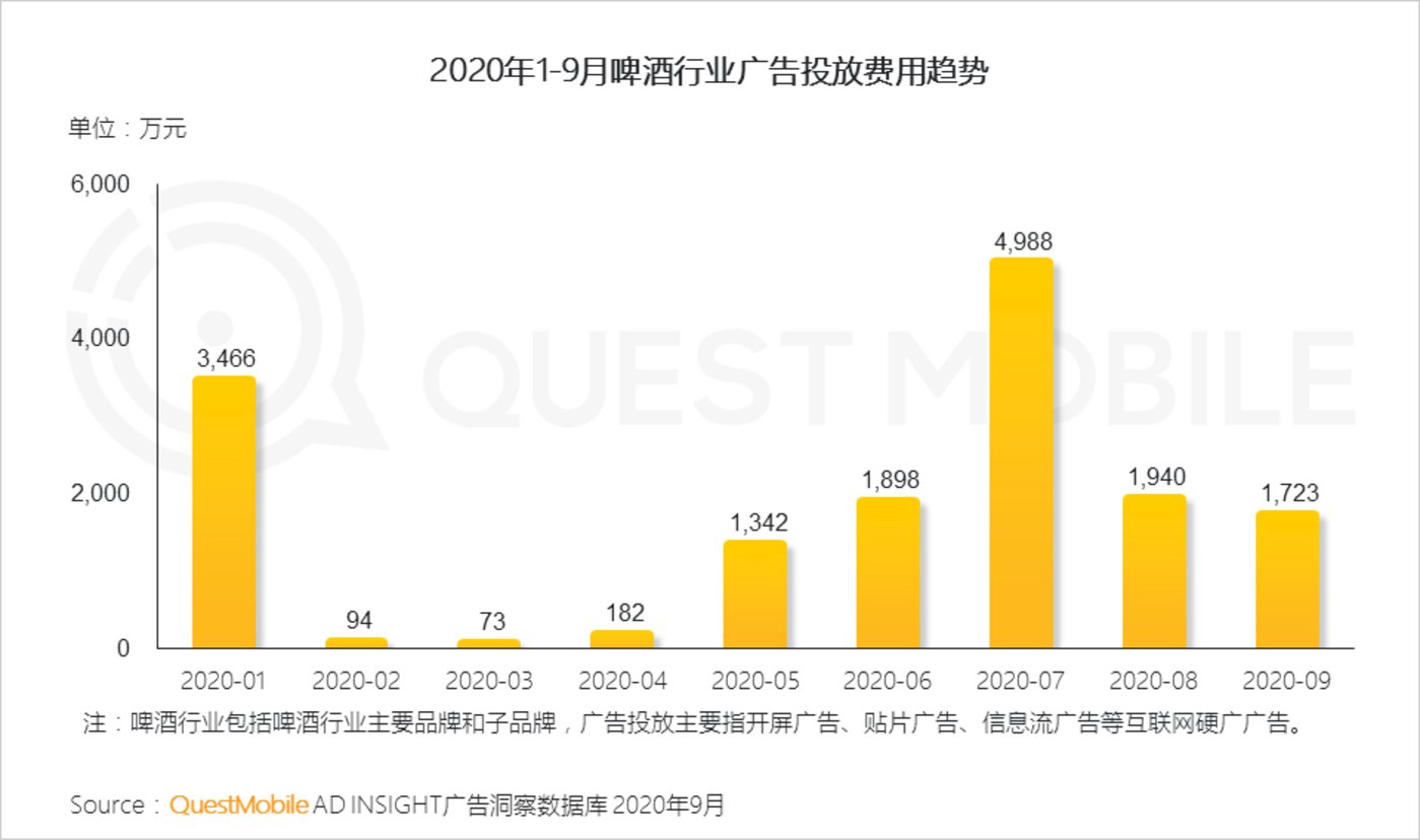 啤酒行业偏好以体育赛事为聚焦点进行相关广告投放。另外,由于线下聚会消费场景减少(Q3逐步恢复),整体销量受到影响,相应广告投放预算缩减。