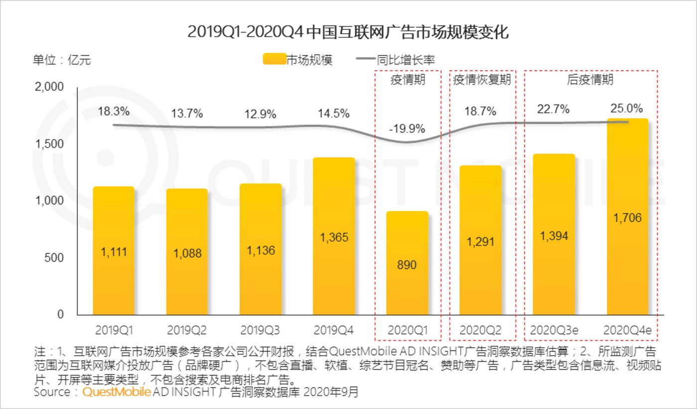 1.4 受到疫情等因素影响,上半年品牌线下营销场景加速线上化转移,Q3广告投放进一步释放,互联网广告市场增速提升