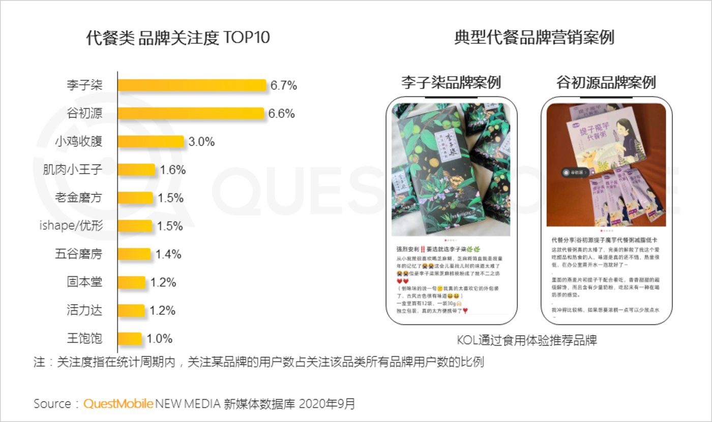 代餐品类快速崛起,用户主要为高消费能力的年轻女性,新兴品牌通过KOL内容营销的方式推广“低热量”“饱腹感”的产品理念