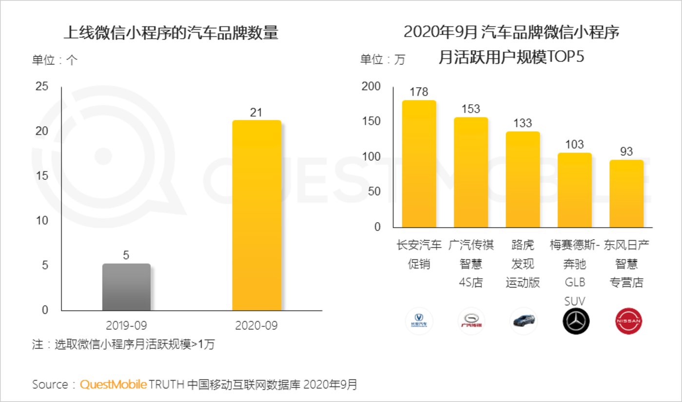 汽车品牌加速线上化布局,微信小程序成为汽车品牌主宣传新品、促销、提供预约试车等多元服务新渠道