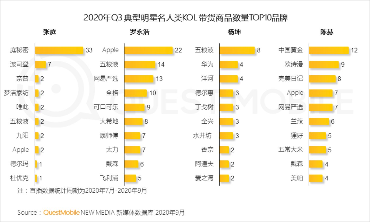 直播为明星名人与品牌的合作创造了新的方式,明星名人进行直播带货的频率加快,部分明星与品牌进行长期合作
