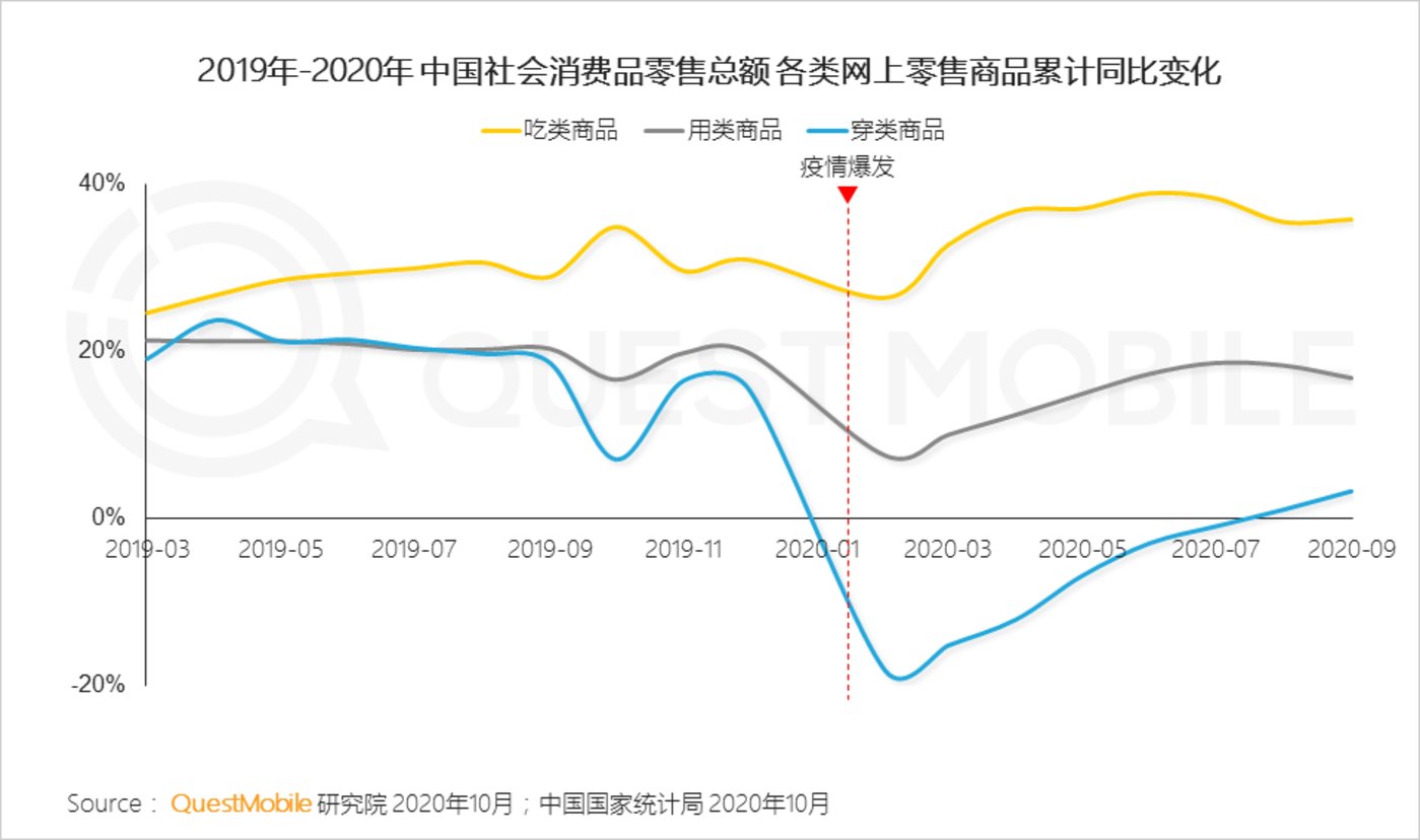 1.3 在疫情的严重影响下,吃、用等必需消费成为重要的稳定因素