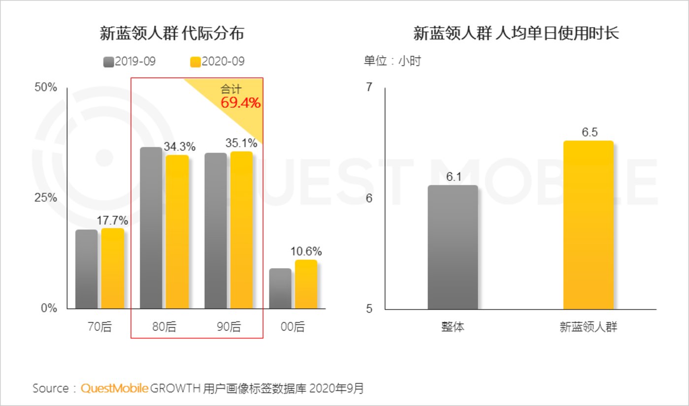 Ⅲ. 新蓝领人群中以80后、90后为主,00后群体在快速增长,相较全网整体,他们对于移动互联网的依赖度更高
