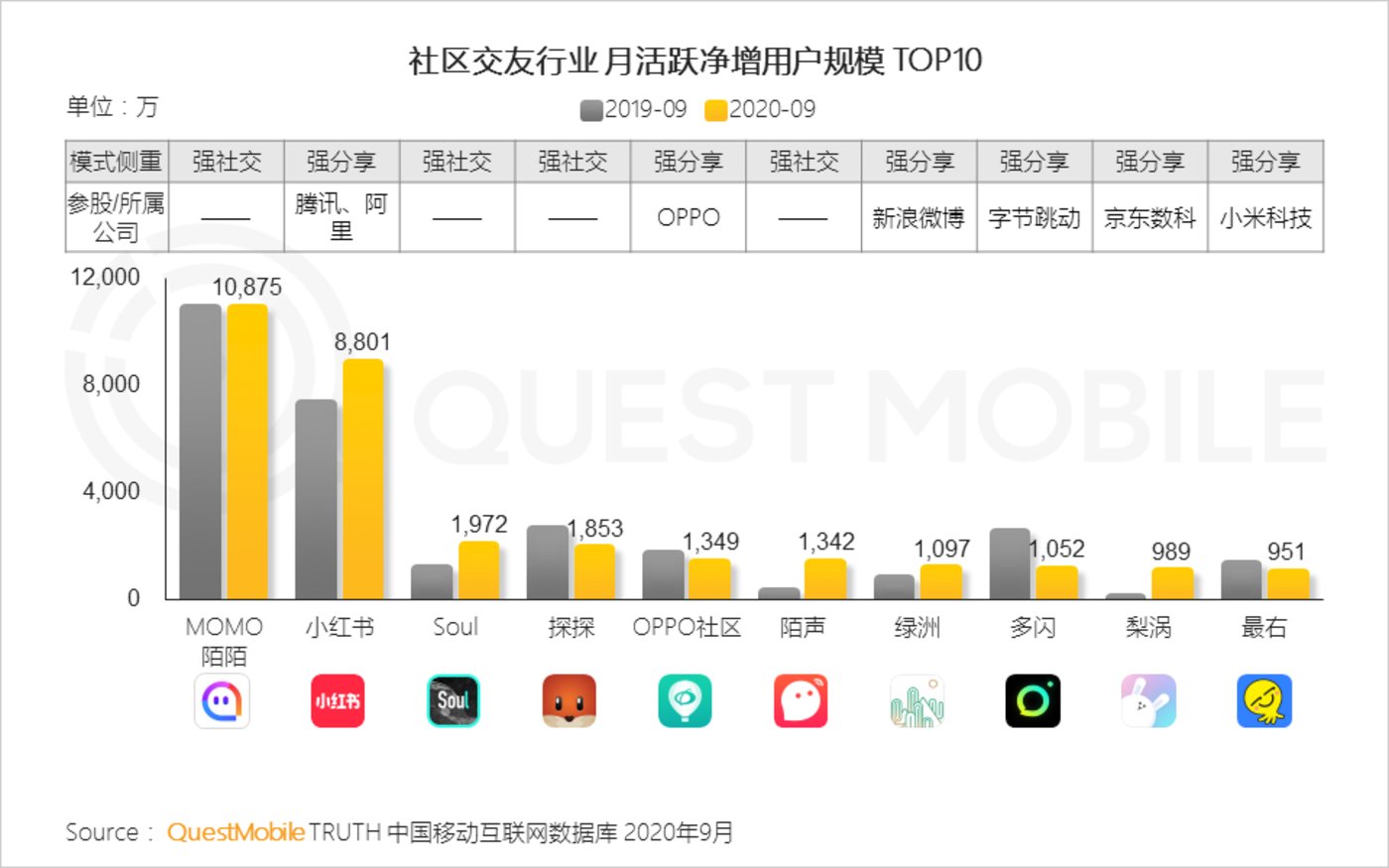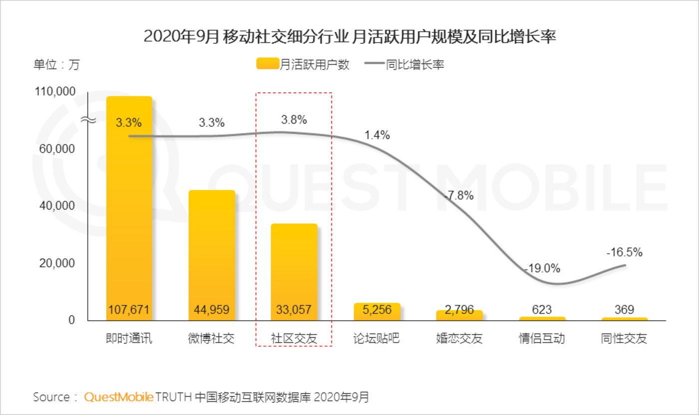 移动社交行业增长逐步趋于稳定,其中社区交友行业增长相对较为突出