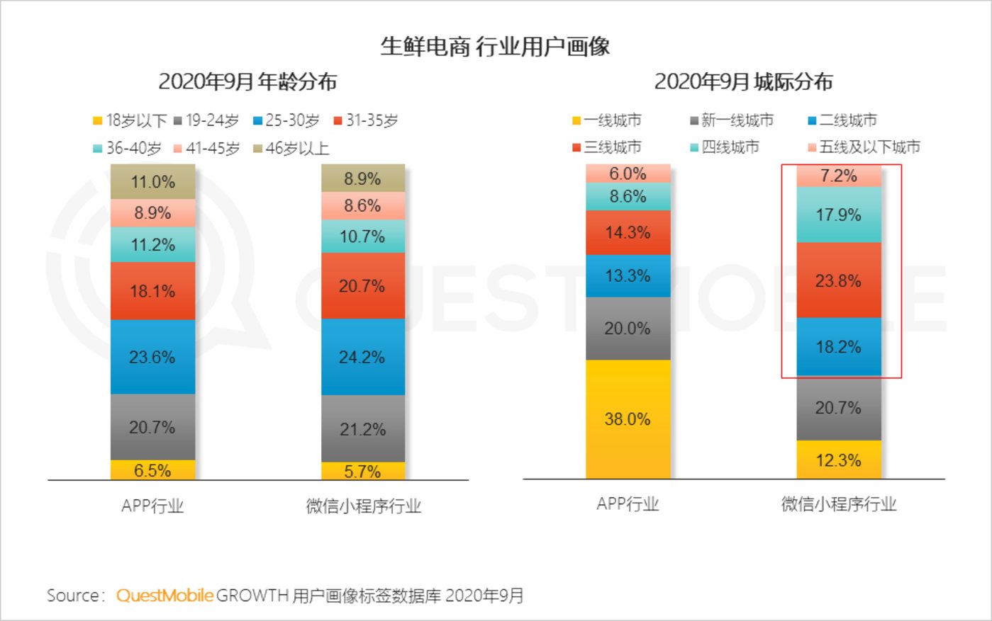 8.6相比APP行业,生鲜电商微信小程序行业获得更多“五环外”的中年客户