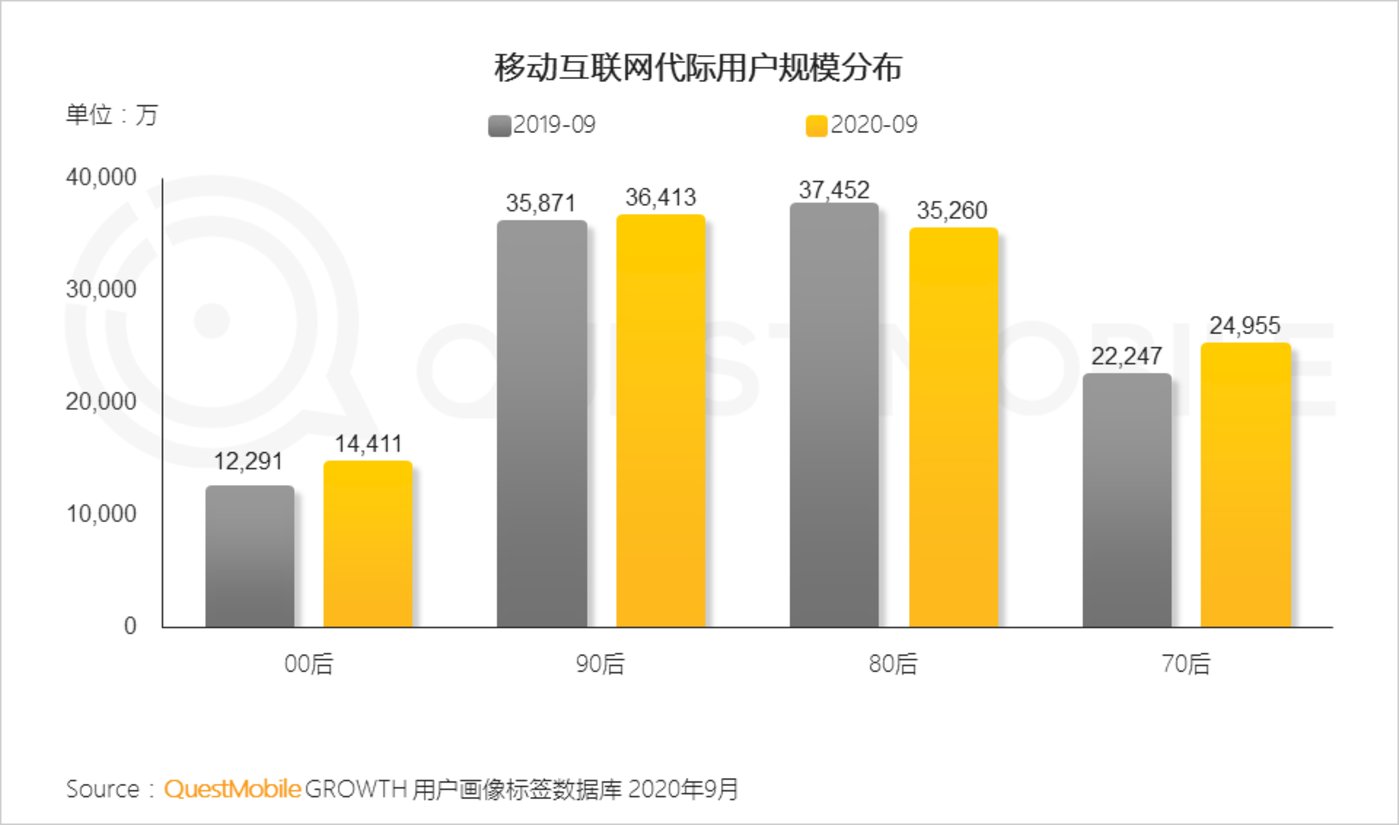 Ⅲ.移动互联网用户结构方面,00后和70后用户比例进一步扩大,下沉市场流量增长趋缓