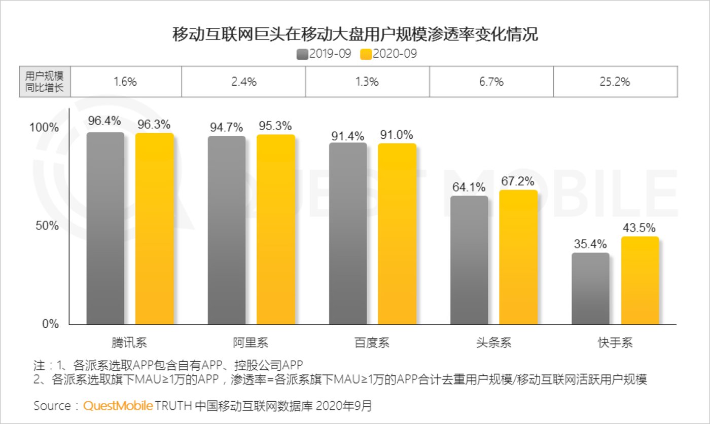 腾讯系在社交及办公领域增长明显,阿里系持续在电商、办公及支付领域发力,百度侧重信息流,短视频为头条及快手系主要增长来源