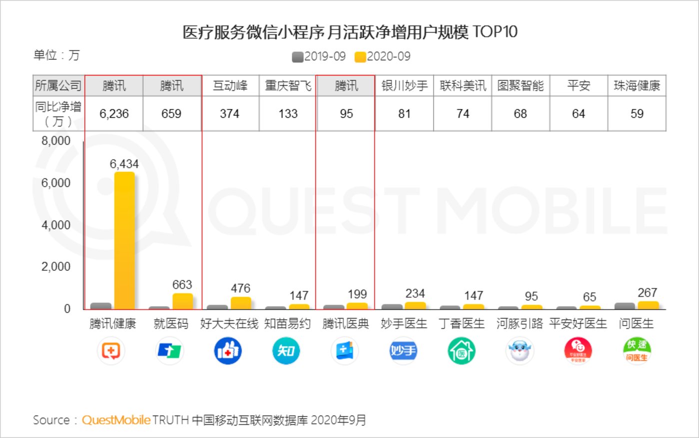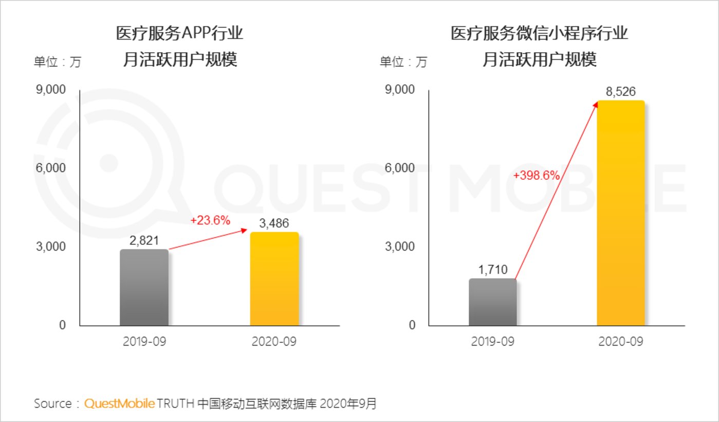 疫情加速医疗服务的场景延伸,医疗服务行业用户规模在小程序方面反超APP,近一年来大增4倍