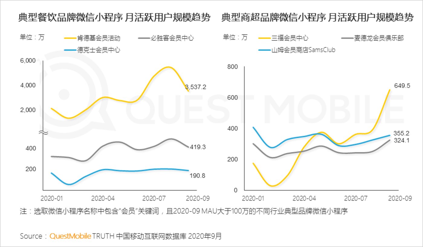餐饮与商超品牌通过小程序维护线下引流的会员用户,为其提供智能推荐、专享活动等深度服务