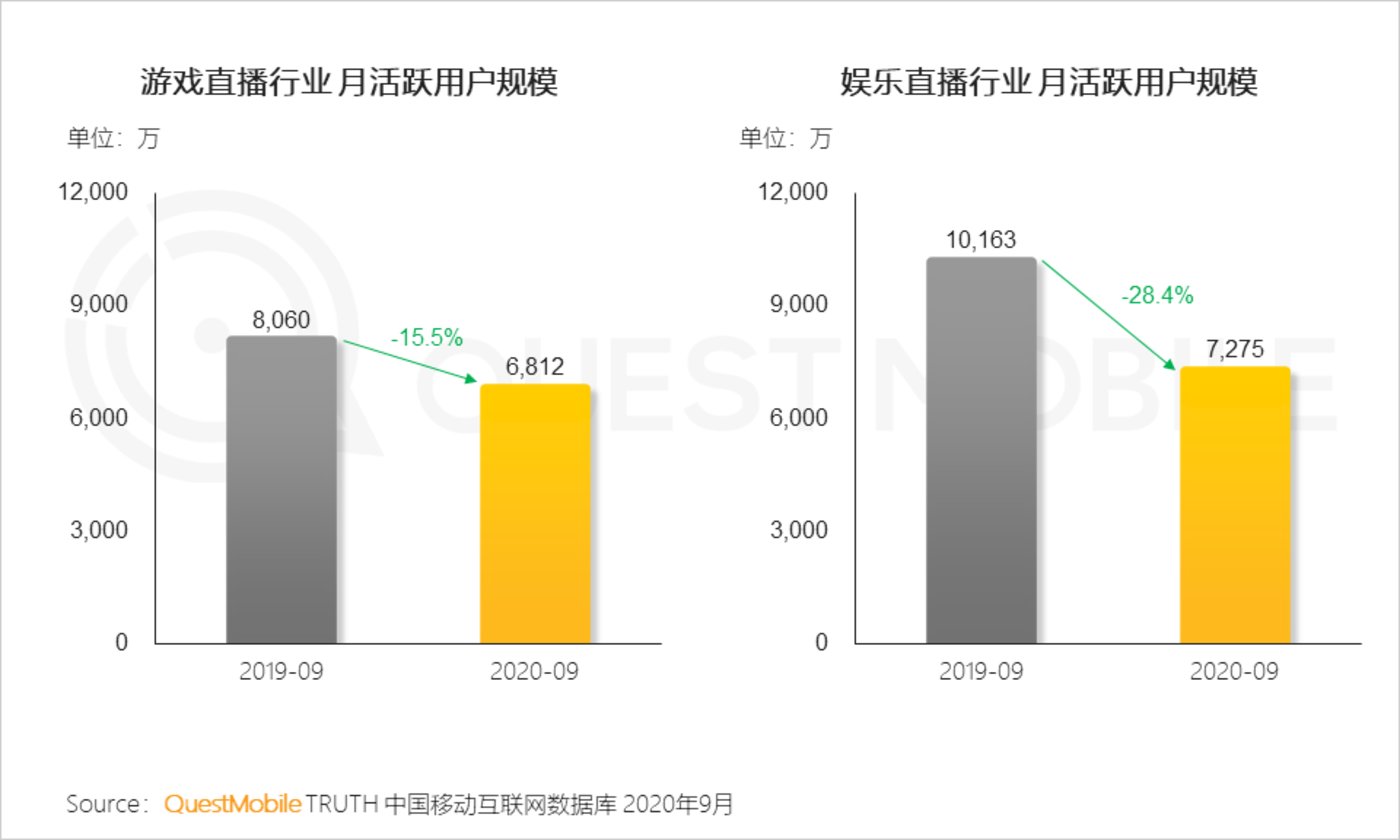 4.1 直播逐步成为各行业基础设施,垂直直播行业面临的竞争压力加大,游戏直播和娱乐直播用户规模下滑明显