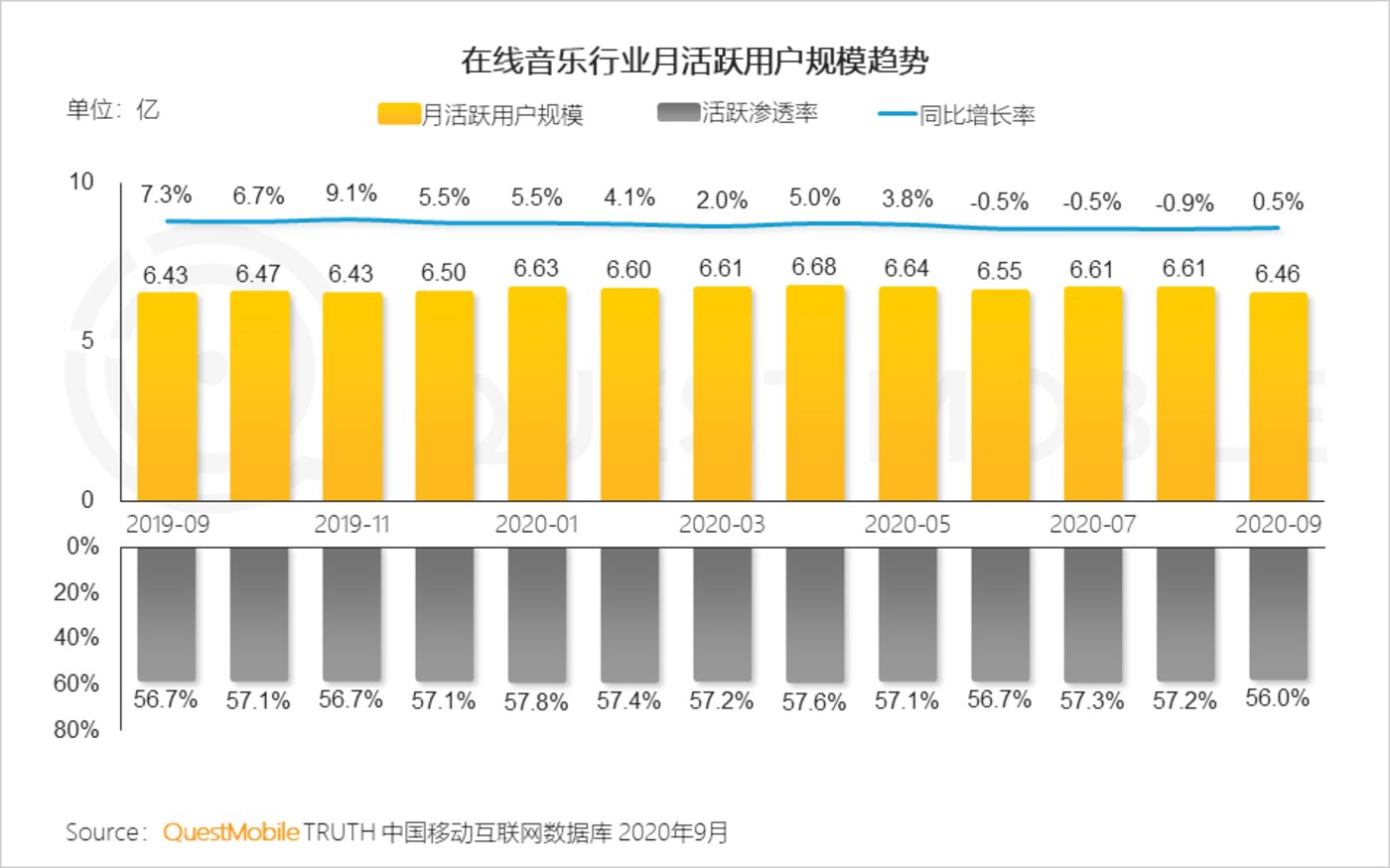 在线音乐行业增速出现下滑趋势,用户规模趋于稳定,存量用户价值挖掘成为行业关注重点