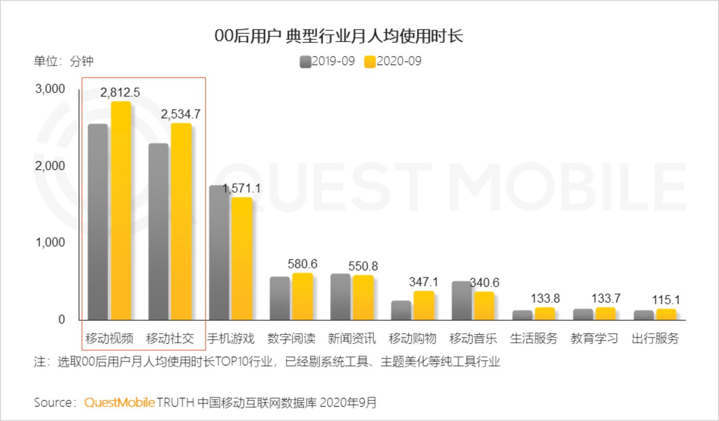 Ⅲ移动视频超越移动社交成为00后人群使用时长第一位行业