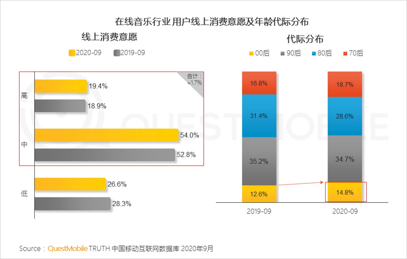 5.2 在线音乐平台加深版权布局的同时拓宽音乐场景,提升音乐多维生命力,吸引更多年轻流量,用户线上中高消费意愿提升明显