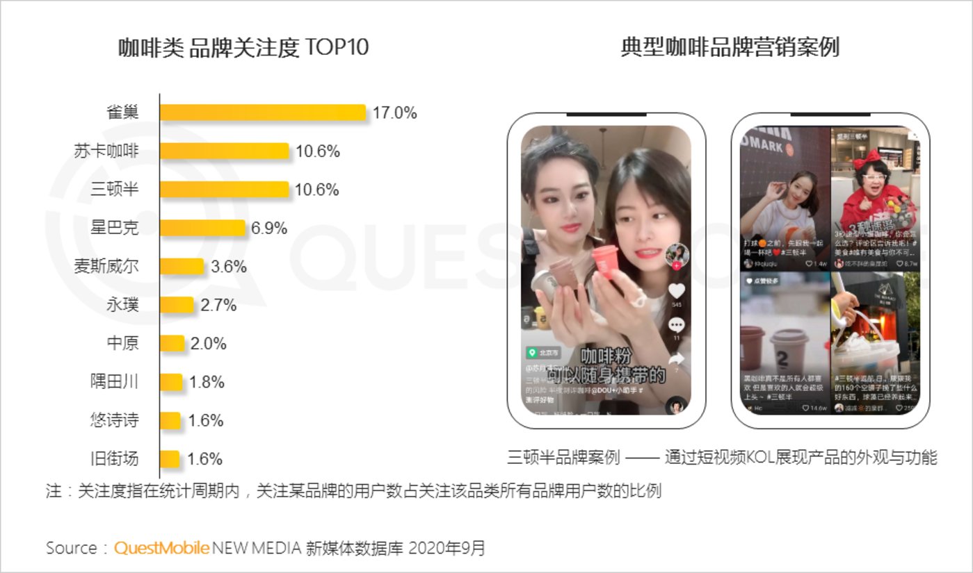 速溶咖啡品类同样面对高消费能力的年轻女性,其中一线城市用户的TGI更高,新兴咖啡品牌通过短视频KOL的创意内容传达文化品味
